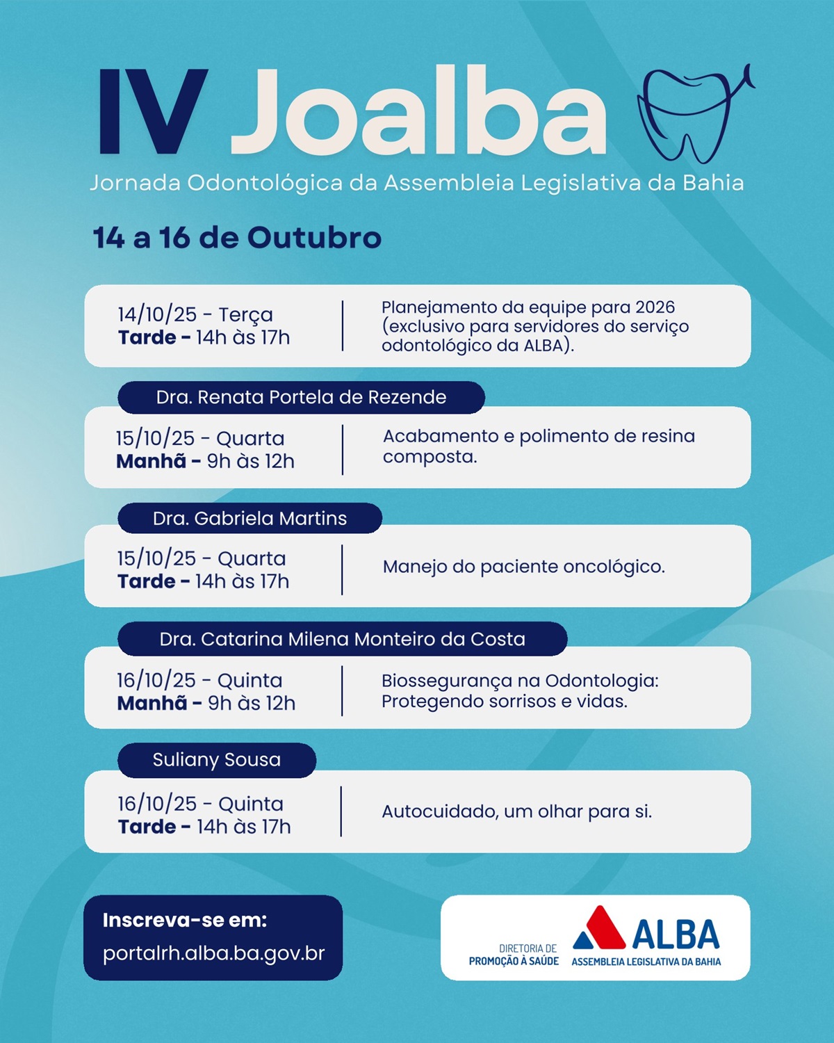 IV JORNADA ODONTÓLOGICA DA ASSEMBLEIA LEGISLATIVA DA BAHIA INSCRIÇÕES ABERTAS